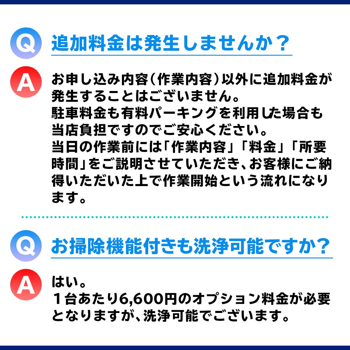 ※所要時間:約1時間~1,5時間/1台(お掃除機能付き:約2時間~3時間/1台)