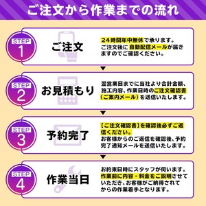 ・ご希望日は「カートに入れる」ボタンを押した後、備考欄にご記入ください。ご希望日が未記入の場合は、作業可能日をメールでお知らせいたします。
